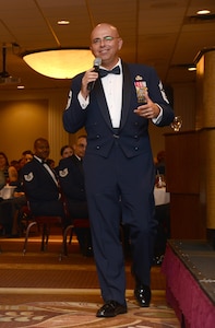 First Lt. Katy Martin, and Capt. Cody Martin, both of the 963rd Airborne Air Control Squadron, describe some of the various equipment on board the E-3 Sentry aircraft to Phil Tinker, grandson of Maj. Gen. Clarence Tinker, whom the base is named after. Tinker also toured the Oklahoma City Air