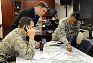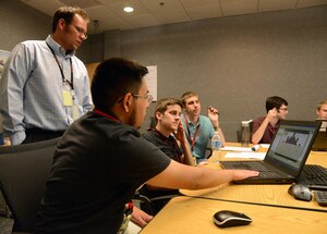 Lt. Gen. Lee K. Levy II, center, Air Force Sustainment Center commander, is surrounded by commanders and senior leaders from subordinate units brought together for a Commanders Conference Aug. 3-4 at Tinker. General Levy discussed and took inputs from the commanders on the AFSC Strategic Plan in a