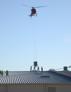 A helicopter hoisted 61 supply and exhaust fans onto the roof of Bldg. 510 last Saturday in just an hour and a half."I calculated that the pilot, Jim Robinson of St. Louis Helicopter, deposited one of those fans on the roof of that building every minute and 25 seconds," said Gary Jones, project