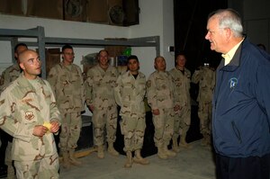 The Secretary of the Air Force is now more than a picture on the wall to one Tinker Airman assigned here. The Honorable Michael Wynne toured the 407th Air Expeditionary Group here Mar. 28, and one of the many briefings he received came from Senior Airman Byron Kluewer, a 407th Expeditionary