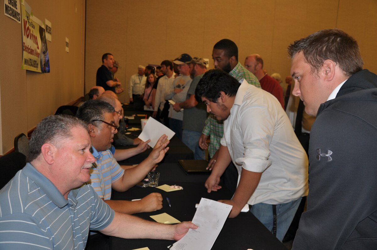 More than 2,000 people attended an informational Career Fair at the Reed Center Nov. 2, as part of the Oklahoma City Air Logistics Complex’s “1,000 Hires in 100 Days” campaign which kicked off Oct. 5 and will conclude Jan. 13. Several representatives from across the Complex and Civilian Personnel were on hand to answer questions from prospective job applicants on the types of positions available and skill sets required along with federal employment benefits. (Air Force photo by Edith Clemons/Released)